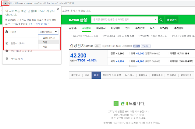 Flash를 허용으로 바꾼 후 새로고침을 누르면 됩니다.